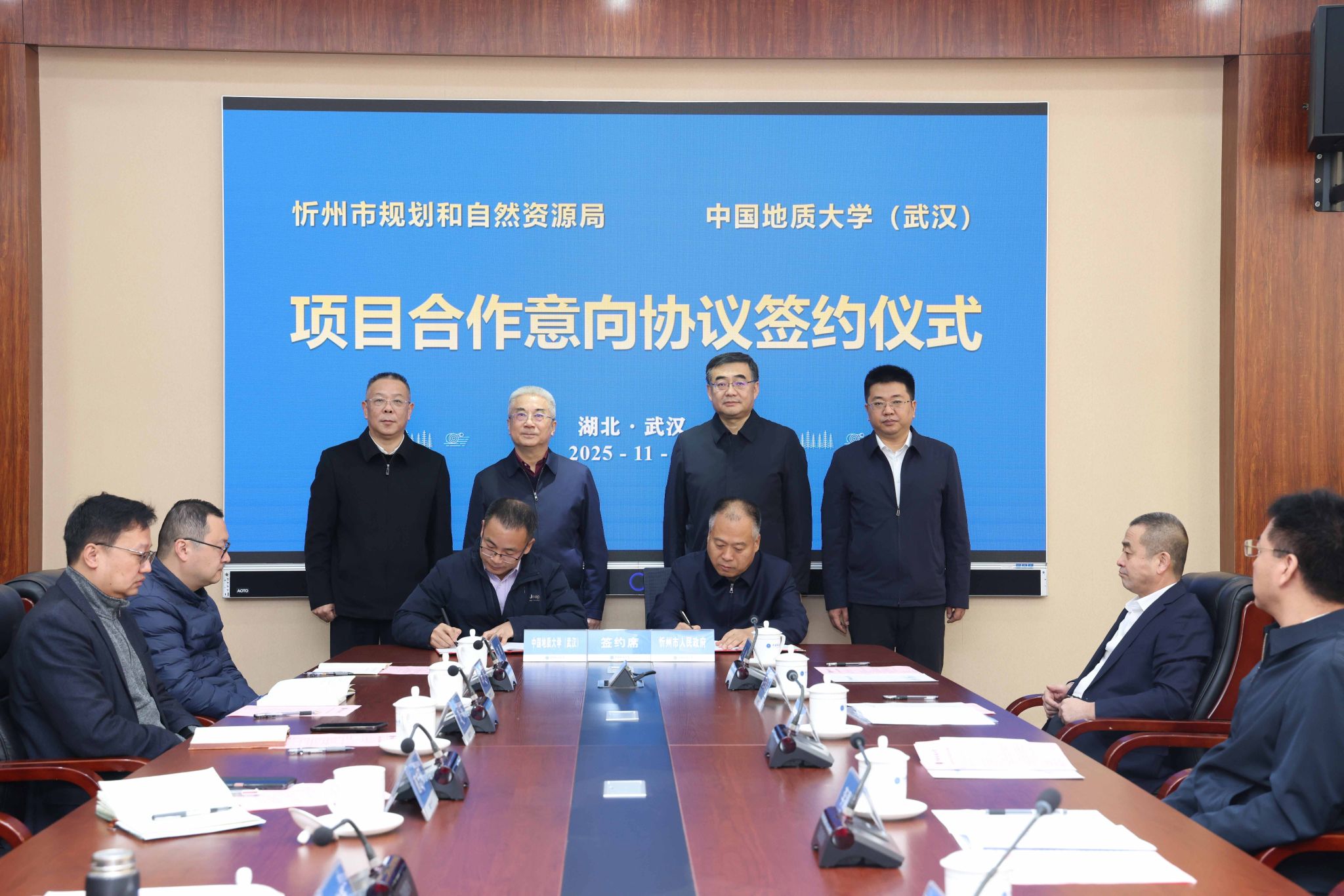 地大新闻网讯 (通讯员 宁蒙 摄影 孙彦钦)11月26日,我校与山西省忻州市人民政府签署战略合作框架协议。中国科学院院士王焰新、校党委副书记唐忠阳,忻州市市长李建国、副市长李硕,双方相关单位负责人参加签约仪式。