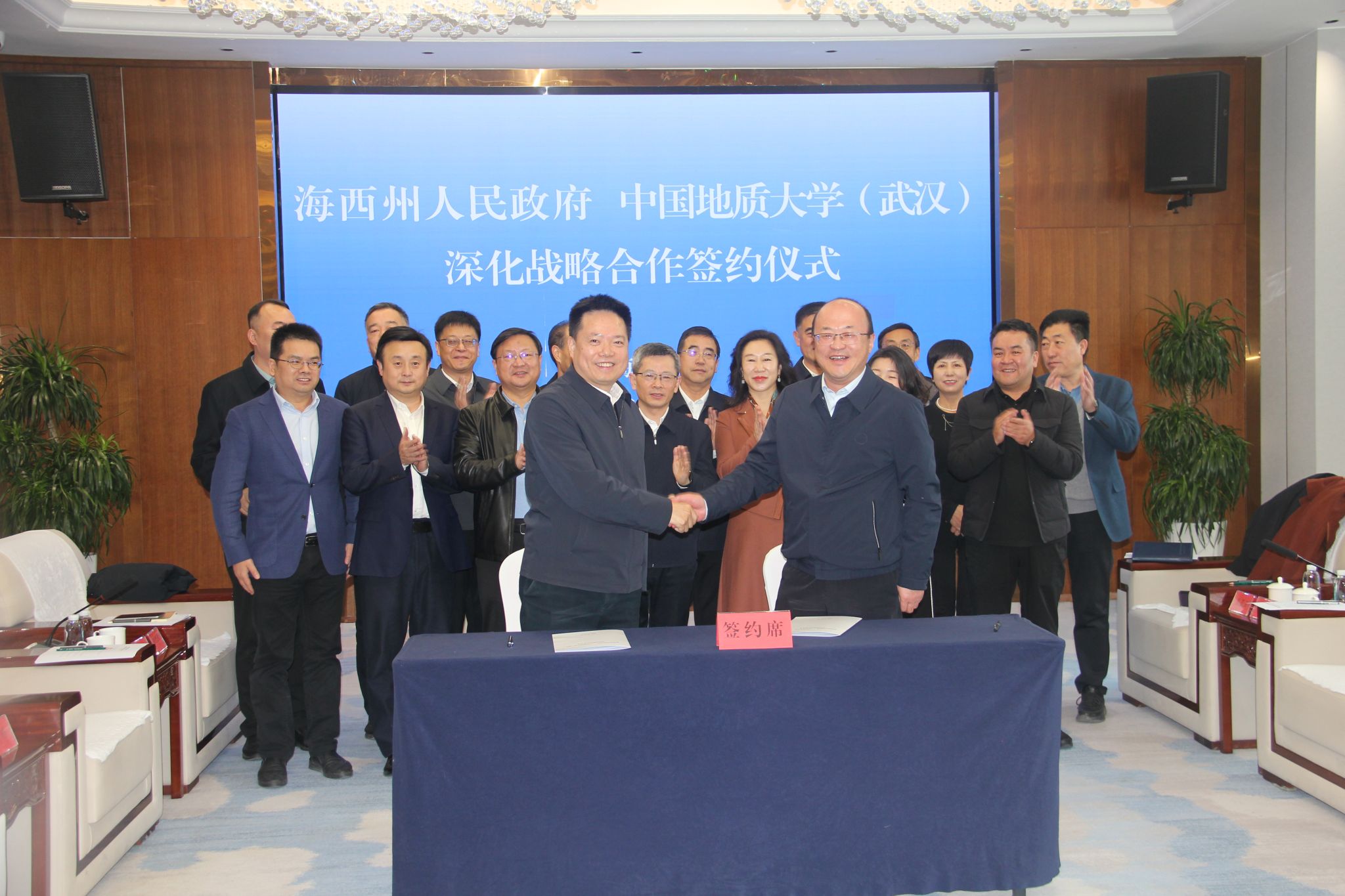 李建威指出,自2019年我校与海西州政府签订战略合作协议以来,双方合作取得了显著成效。我校多个教授团队在矿山生态修复、地质找矿等方面做出了重要贡献,并得到了青海相关主管部门的高度认可。此次续签协议,旨在拓展合作广度与深度,聚焦地方发展中的科技与人才需求,完善常态化对接与清单化管理机制,推动双方在战略性矿产勘查、盐湖资源综合利用、生态环境修复、地学科普旅游等领域开展务实合作,共同为“四地”建设和绿色高质量发展注入新动能。